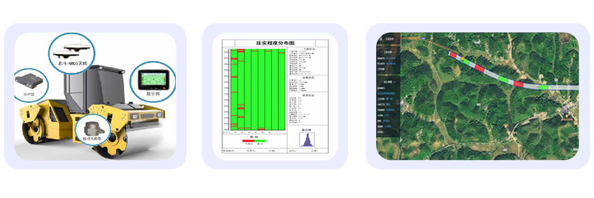 智能碾壓系統(tǒng)是利用北斗+GPS高精度差分定位技術(shù)、物聯(lián)網(wǎng)技術(shù)、實(shí)時(shí)通訊技術(shù)、大數(shù)據(jù)處理技術(shù)等,對(duì)壓路機(jī)的碾壓遍數(shù)、碾壓軌跡、碾壓速度、振頻振幅等數(shù)據(jù)實(shí)時(shí)采集,根據(jù)采集的數(shù)據(jù)結(jié)合試驗(yàn)檢測(cè)對(duì)施工質(zhì)量(壓實(shí)度)進(jìn)行分析判斷,及時(shí)掌握碾壓過(guò)程施工質(zhì)量狀態(tài)的技術(shù)。
