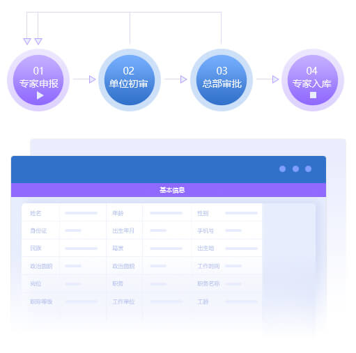 專家智庫(kù)系統(tǒng)實(shí)現(xiàn)工程技術(shù)專家信息在線申報(bào)、審批、評(píng)審、入庫(kù)、考評(píng)等全流程規(guī)范化管理,形成包括專家基本信息、標(biāo)簽信息、項(xiàng)目業(yè)績(jī)信息等在內(nèi)的專家信息庫(kù)。