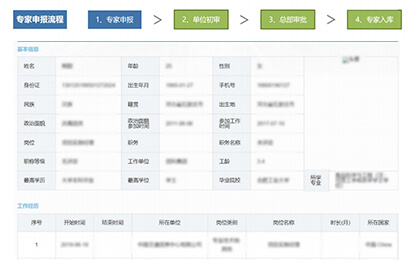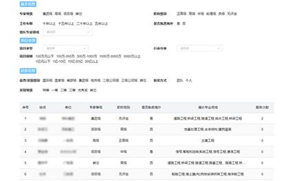 ①基本信息:專家等級(jí)、職稱級(jí)別、擅長(zhǎng)專業(yè)領(lǐng)域、工作年限、是否熟悉海外業(yè)務(wù);